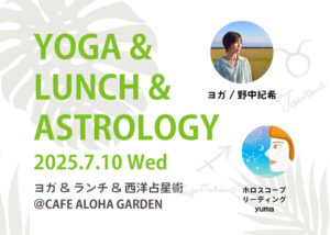 野中紀希さんが毎月開催している、「カフェヨガ@ALOHA GARDEN」に、ホロスコープリーディングで参加します。