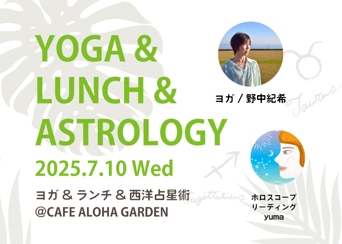 野中紀希さんが毎月開催している、「カフェヨガ@ALOHA GARDEN」に、ホロスコープ...
