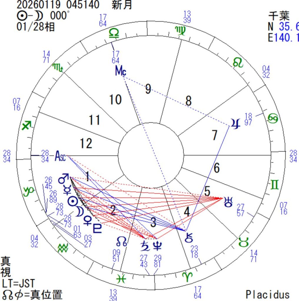 今回の新月は、♆海王星&♄土星の合と、♅天王星とで、小三角を作っています。