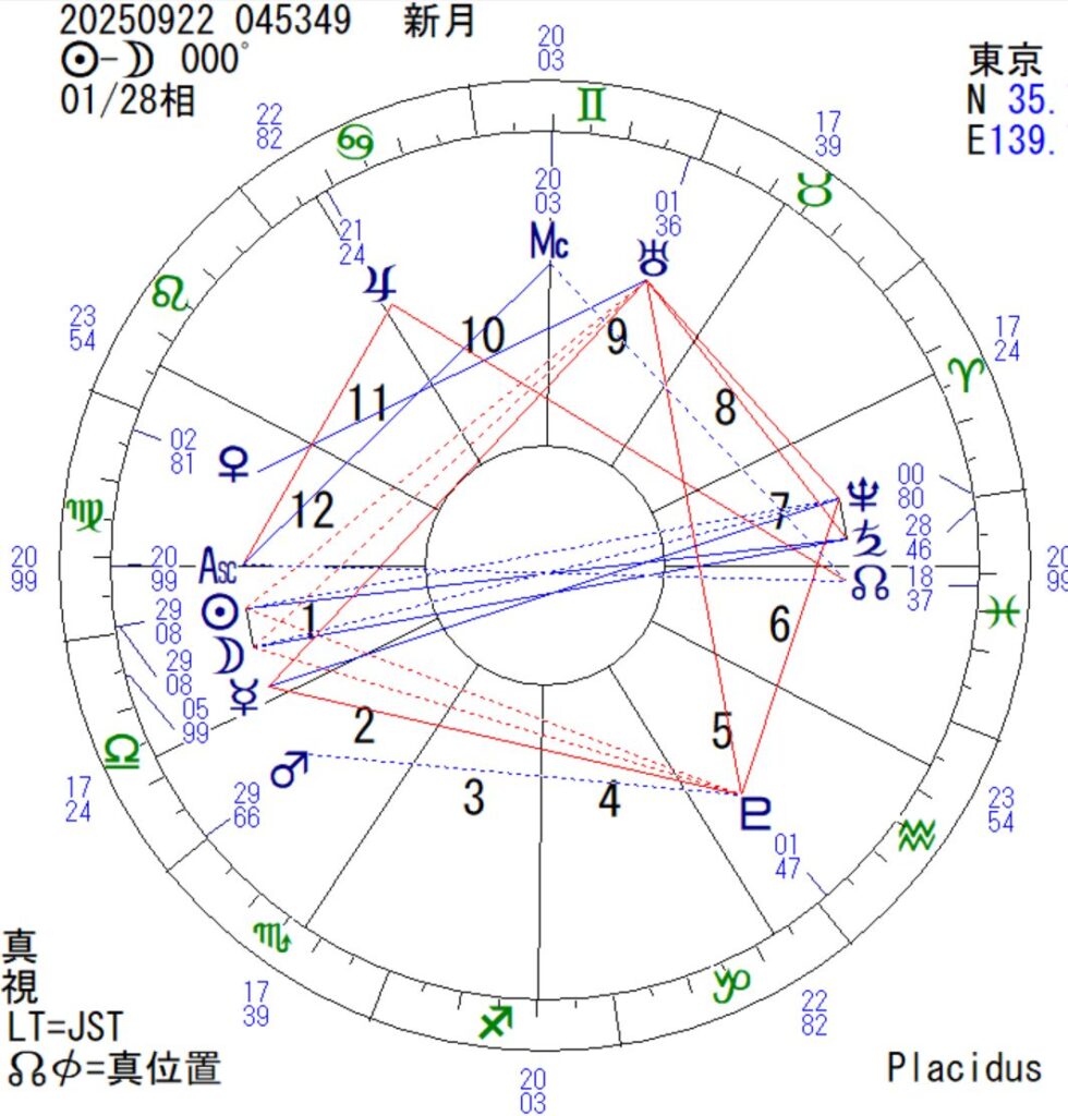 今回の新月は、海王星&土星の合と真向かいの位置にあり、力を助長し合う関係。